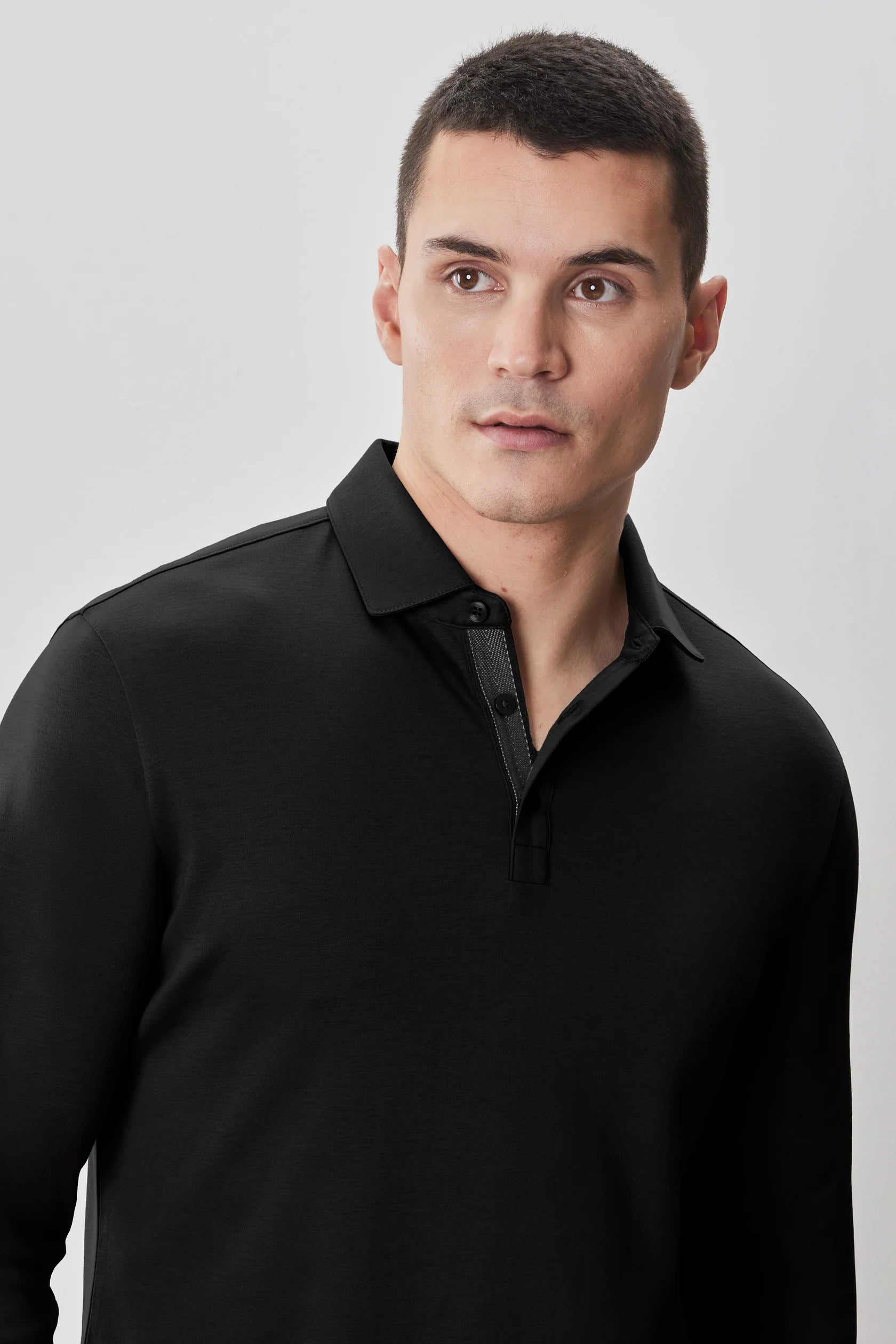 Elevate your casual wardrobe with the Barakett Herringbone Dress Polo, a long sleeve essential crafted from premium extra fine Pima cotton. This sophisticated piece delivers an exceptionally soft, luxurious feel with a subtle luster that distinguishes it from standard polos. The herringbone taping along the button placket adds refined detailing, seamlessly blending timeless elegance with contemporary design. Perfect for layering or wearing solo, this versatile polo transitions effortlessly from weekend gatherings to smart-casual occasions. Machine wash cold and lay flat to dry to maintain its superior quality and appearance.